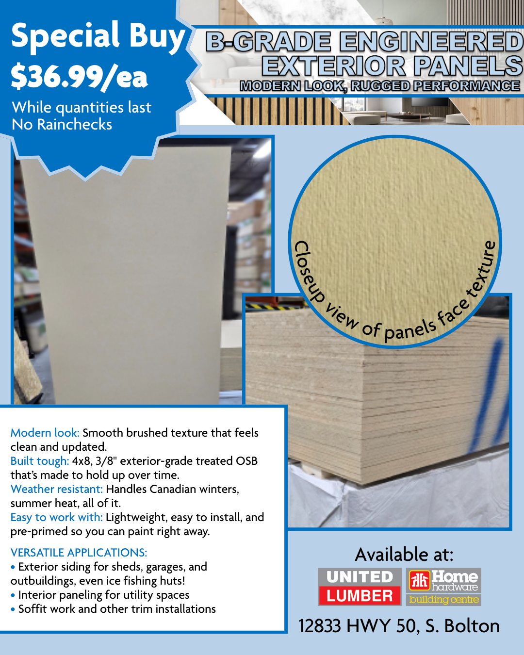 * Thursday's are Senior's Day at United Lumber Home Hardware receive15% off, regular price, in-store, in-stock products. Excludes items in the yard, on sale, YETI, Broil King, Weber, delivery charges, gift cards. Does not apply to house accounts. Photo ID must be shown.